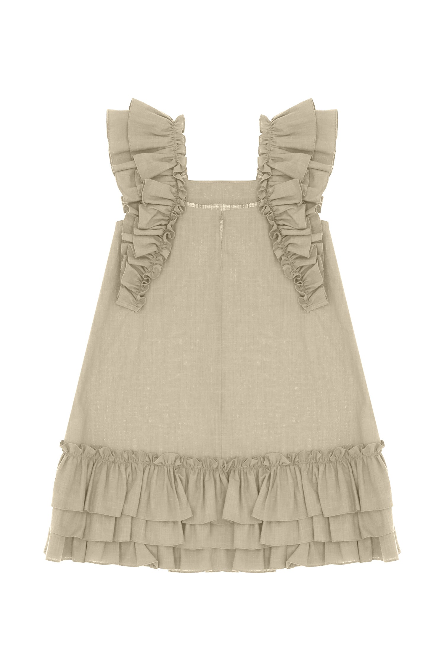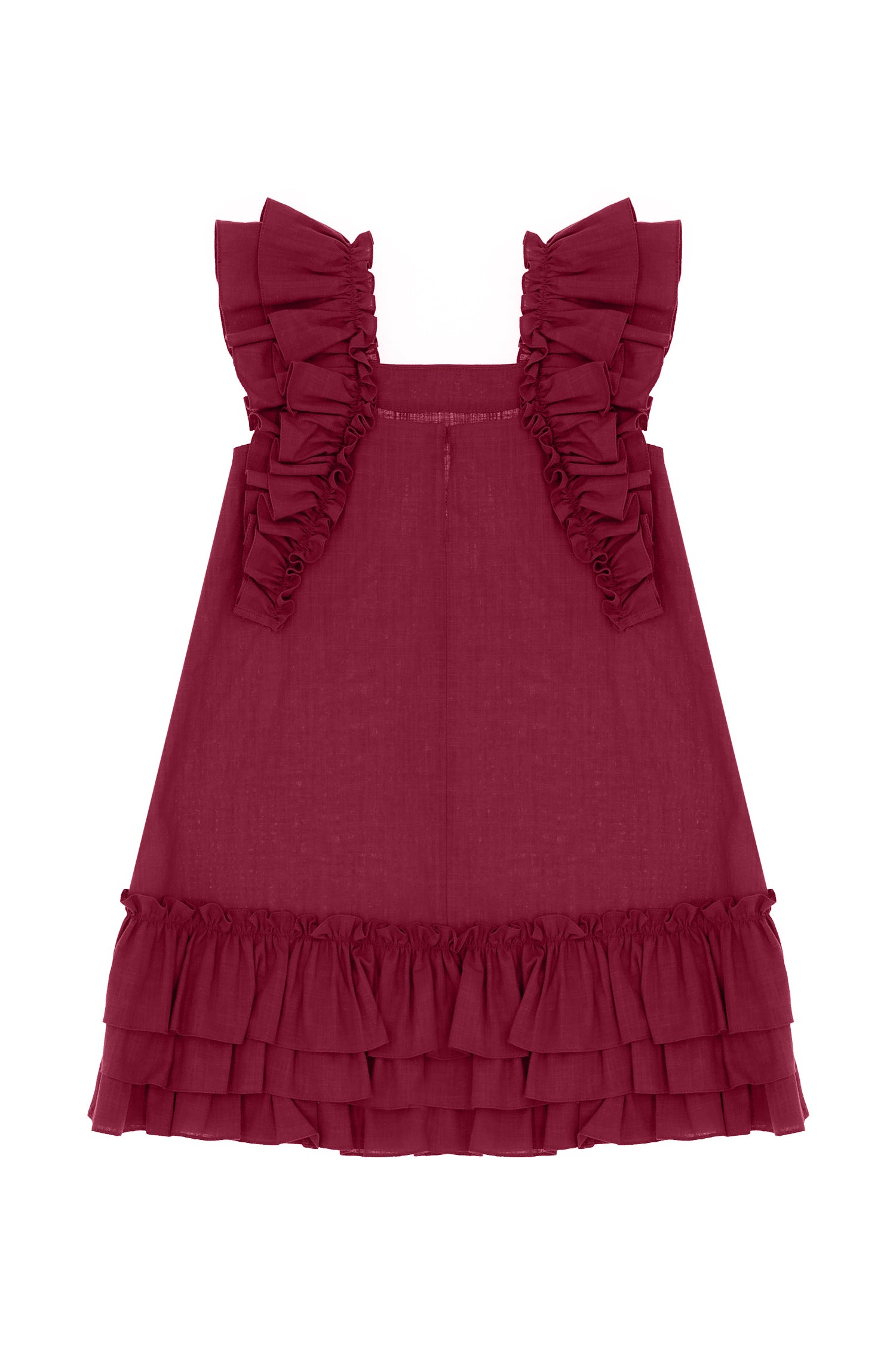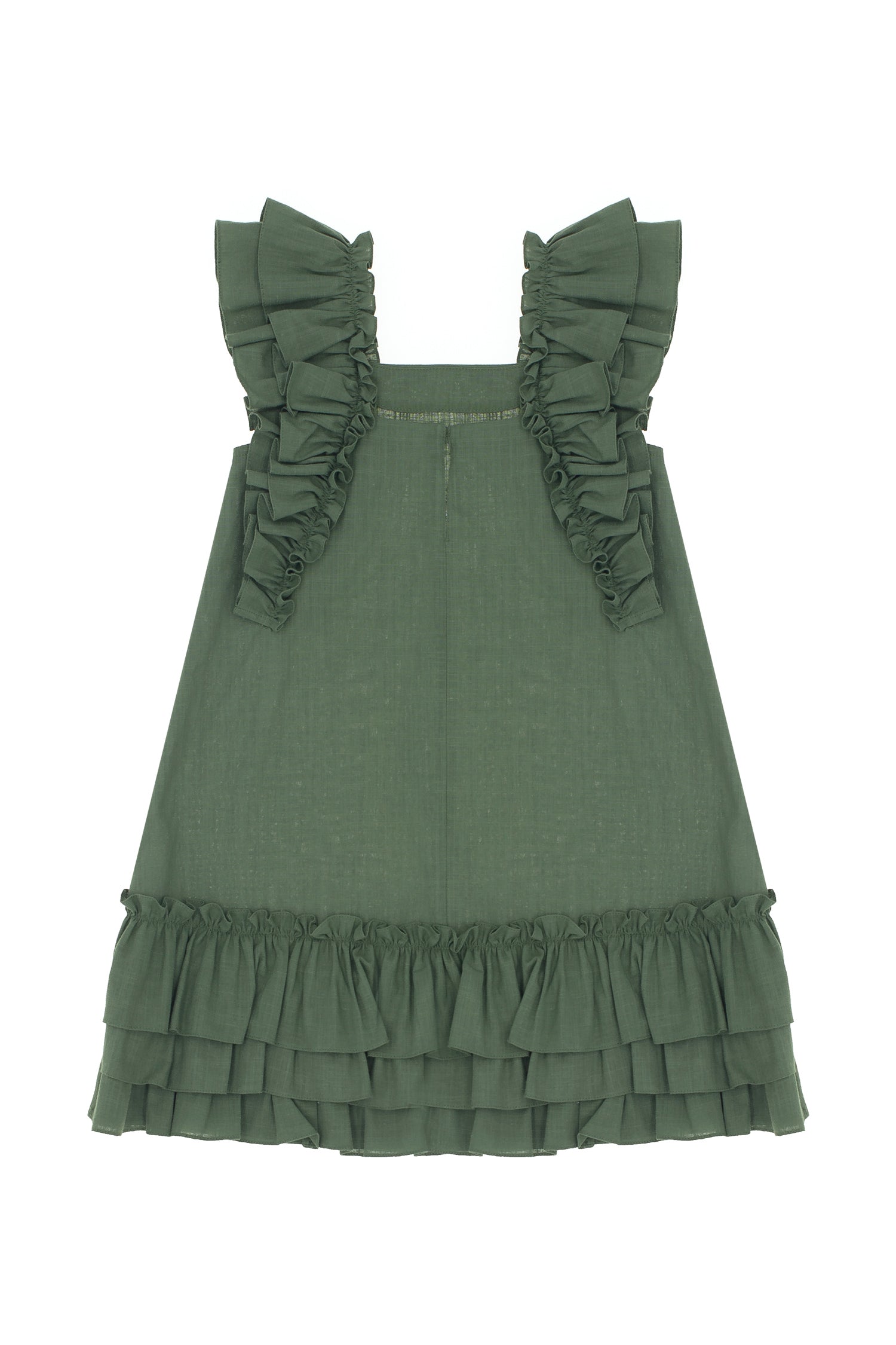- Ruffle detail on sleeves and back hem.